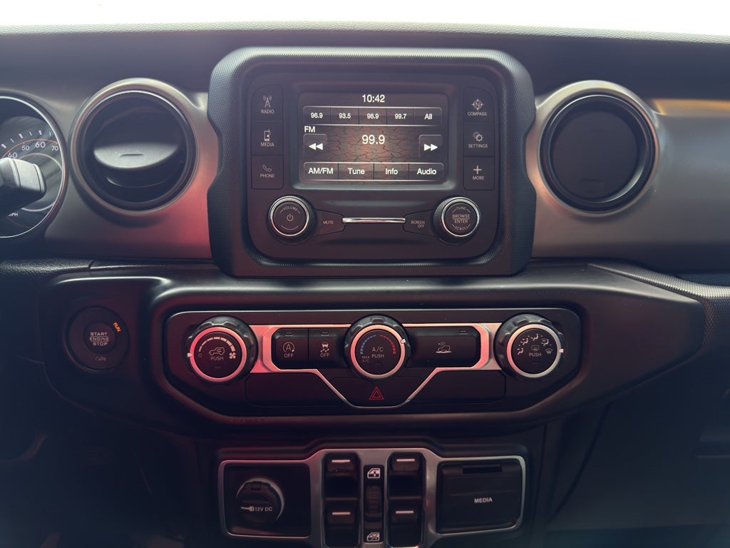 Our dealership has already run the CARFAX report and it is clean. A clean CARFAX is a great asset for resale value in the future. This unit features a hands-free Bluetooth® phone system. See what's behind you with the back up camera on this vehicle. Set the temperature exactly where you are most comfortable in the Jeep Gladiator. The fan speed and temperature will automatically adjust to maintain your preferred zone climate. Quickly unlock this vehicle with keyless entry. This 1/2 ton pickup has a V6, 3.6L high output engine. The Jeep Gladiator is painted with a sleek and sophisticated black color. This 1/2 ton pickup has four wheel drive capabilities. The vehicle is equipped with a gasoline engine. This unit has heated side mirrors to keep your vision clear in winter weather. Electronic Stability Control is one of many advanced safety features on this model. This 1/2 ton pickup has an automatic transmission.